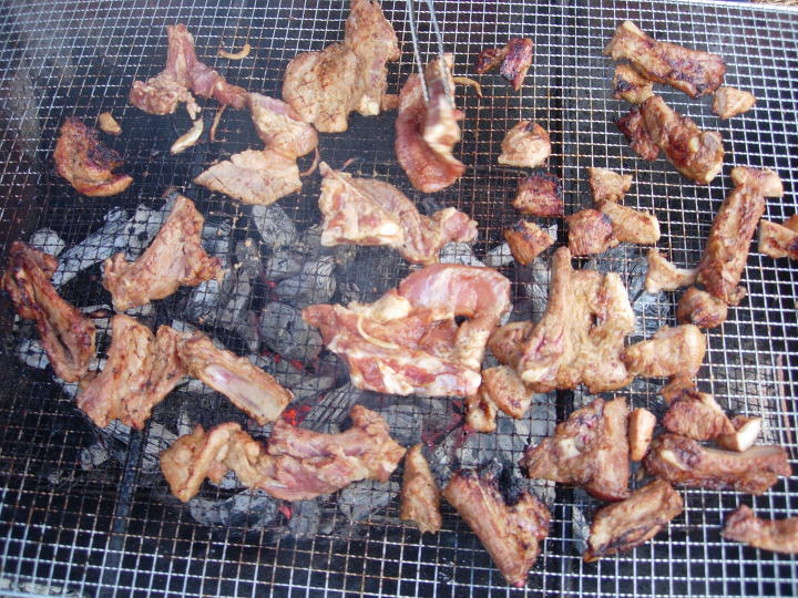 숯불에 구운 고기는 맛이 일품이었습니다.