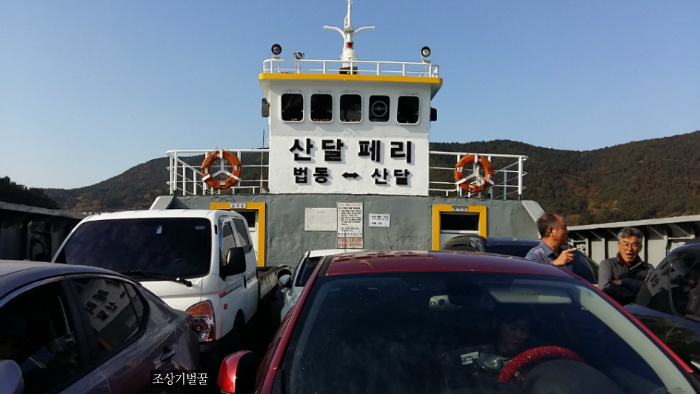 차와 사람이 함께 배에 올라 산달도로 갔습니다.